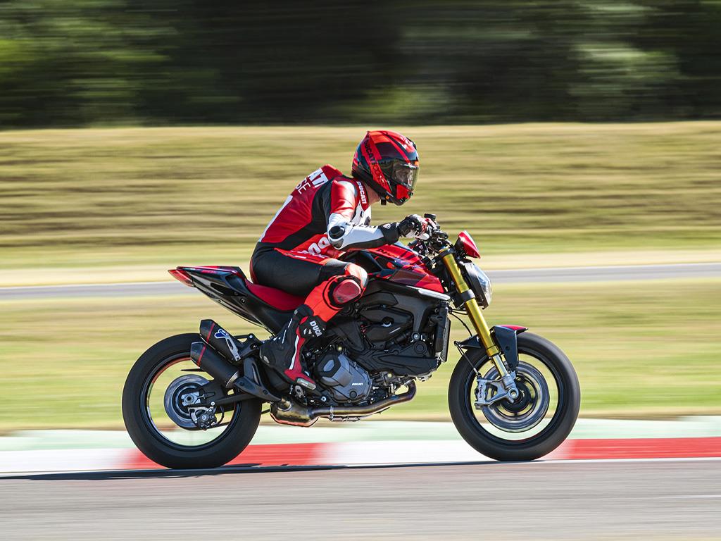 The Monster range grows with the SP version, designed to enhance fun, thanks to technical equipment perfect for those who love sporty riding and embellish style with the Moto GP-inspired livery. The Monster SP takes the 2022 colours of the official team's Desmosedici GP, mounts Öhlins suspensions and Termignoni homologated silencer, Brembo Stylema® calipers and Pirelli Diablo Rosso IV tyres. True sporty equipment that will make you fall in love with the new Monster SP, available also in depowered version. Are you ready for more?