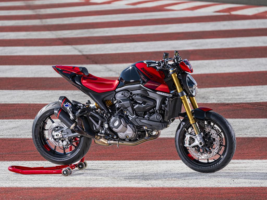 The Monster represents all the essence of Ducati in the most compact, essential and lightweight form possible. Precise in corners. Stable in straight lines. With the SP version you can enjoy more effective sports riding thanks to the absolute top-notch technical equipment such as Öhlins suspension, Brembo Stylema® front calipers, Termignoni homologated silencer, Pirelli Diablo Rosso IV tyres, steering damper and lithium battery.