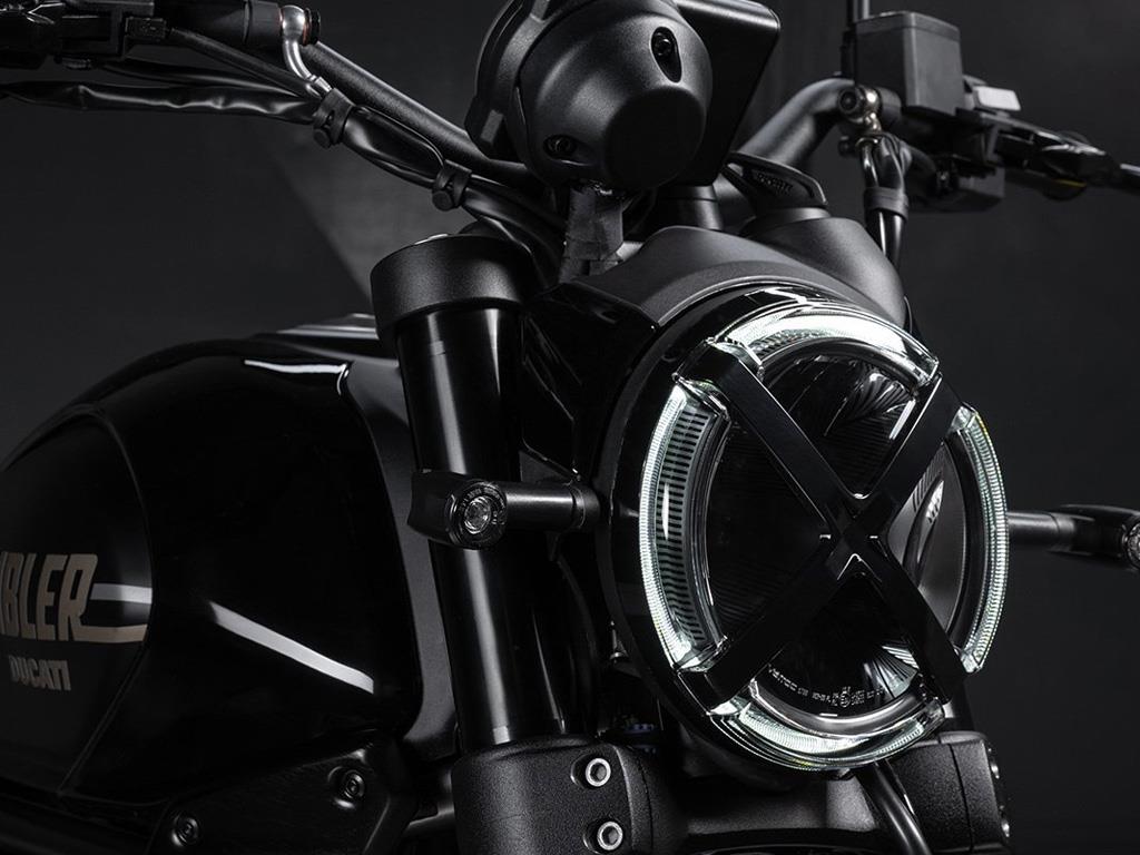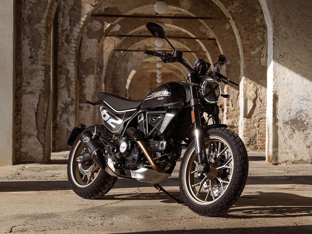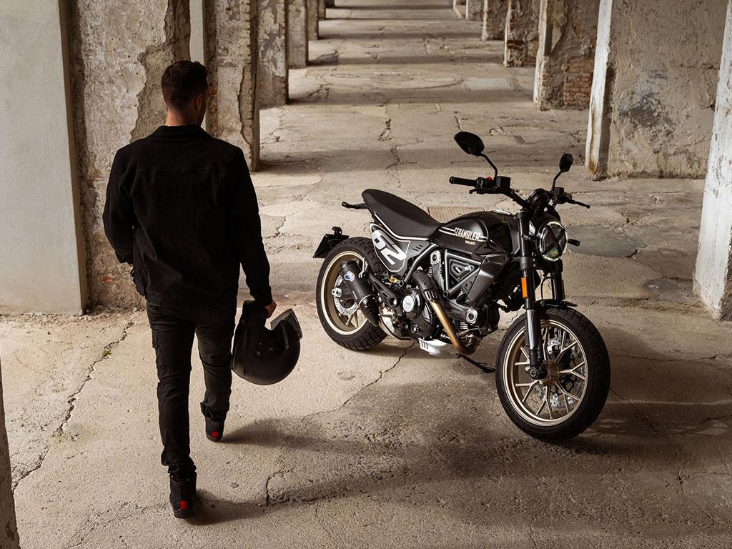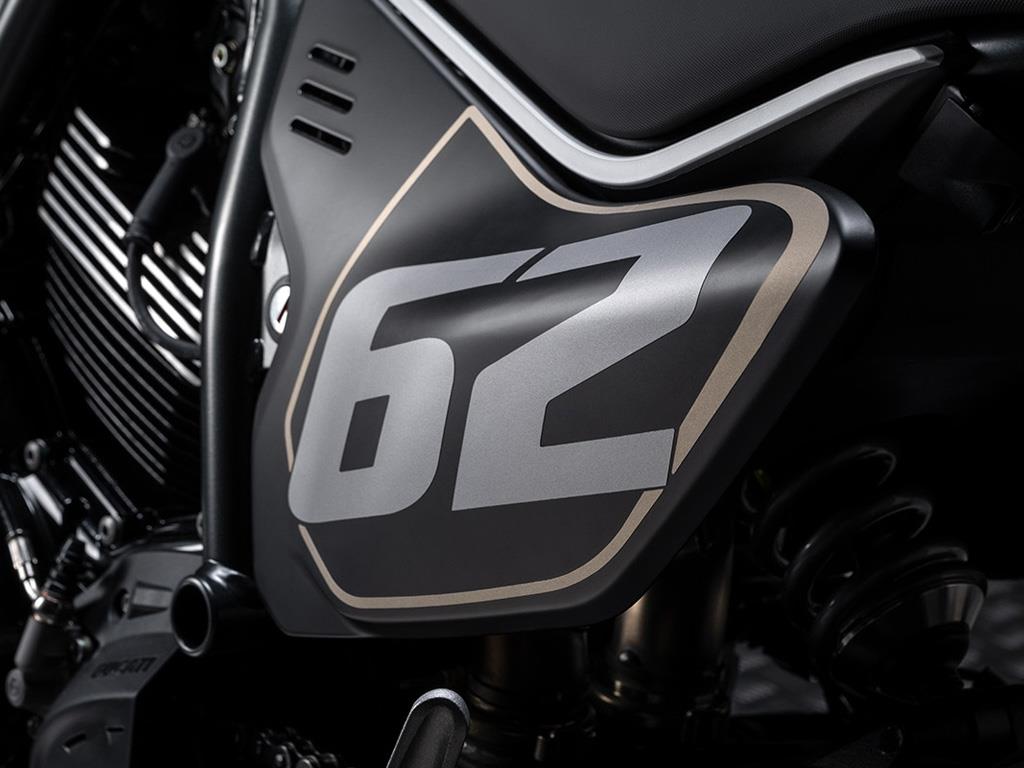 Inspired by flat track racing, the Full Throttle exudes street attitude with its black and bronze livery, bold side number plates, and low variable cross-section handlebar. Every detail reinforces its racing spirit while staying true to its Scrambler® roots.