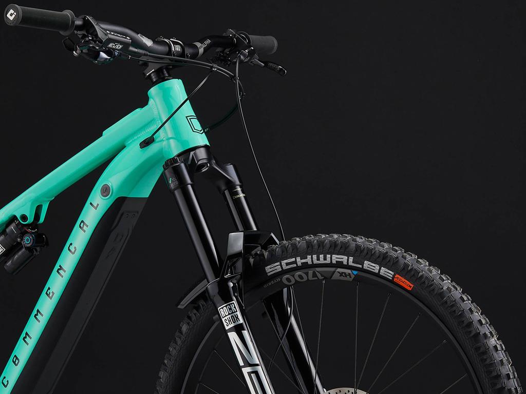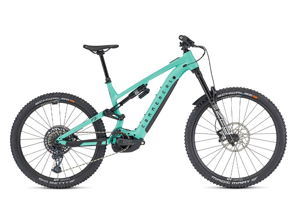 COMMENCAL META POWER SX BOSCH RACE EMERALD GREENOur SX RACE model features the BOSCH Performance Line CX system with smart system, like the other models in the range. This system is one of the most advanced thanks to the power it delivers and the way it delivers it. The eBike Flow App means you can update the system in the blink of an eye and customise the assistance modes easily. RockShox fans will be pleased with this RACE model. The ZEB Ultimate features a DebonAir+ air spring, ButterCups technology, pressure relief valves, and the simplicity of adjustment that they are renowned for. No compromise on the back either, where we use the brands best air shock, the Super Deluxe Ultimate with the easily adjustable DebonAir+ spring and high/low speed compression and rebound settings. For the wheels, we've chosen the DT SWISS HX1700, designed for e-MTB use and assembled by hand by DT SWISS. Solidity and reliability are the key here. Finally, we feature TRP DH-R Evo brakes, the same used at World Cup races by the likes of Amaury Pierron. The 220mm diameter and 2.3mm thick TRP discs will do the stopping. Say no more. *Please note that bike specs are subject to change without prior notice.