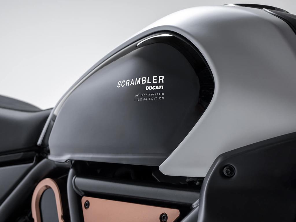Celebrating a decade of the modern Scrambler Ducati, the 10° Anniversario Rizoma Edition is a limited and numbered production of 500 units, embodying both innovation and heritage. Crafted for those who seek the perfect blend of style, performance, and individuality, this exclusive Scrambler® transcends the ordinary — it's a tribute to 10 years of evolution and a bold glimpse into the future, shaped by Rizoma's visionary design.