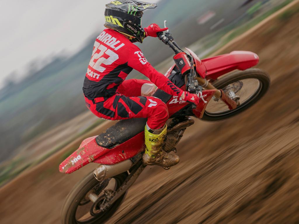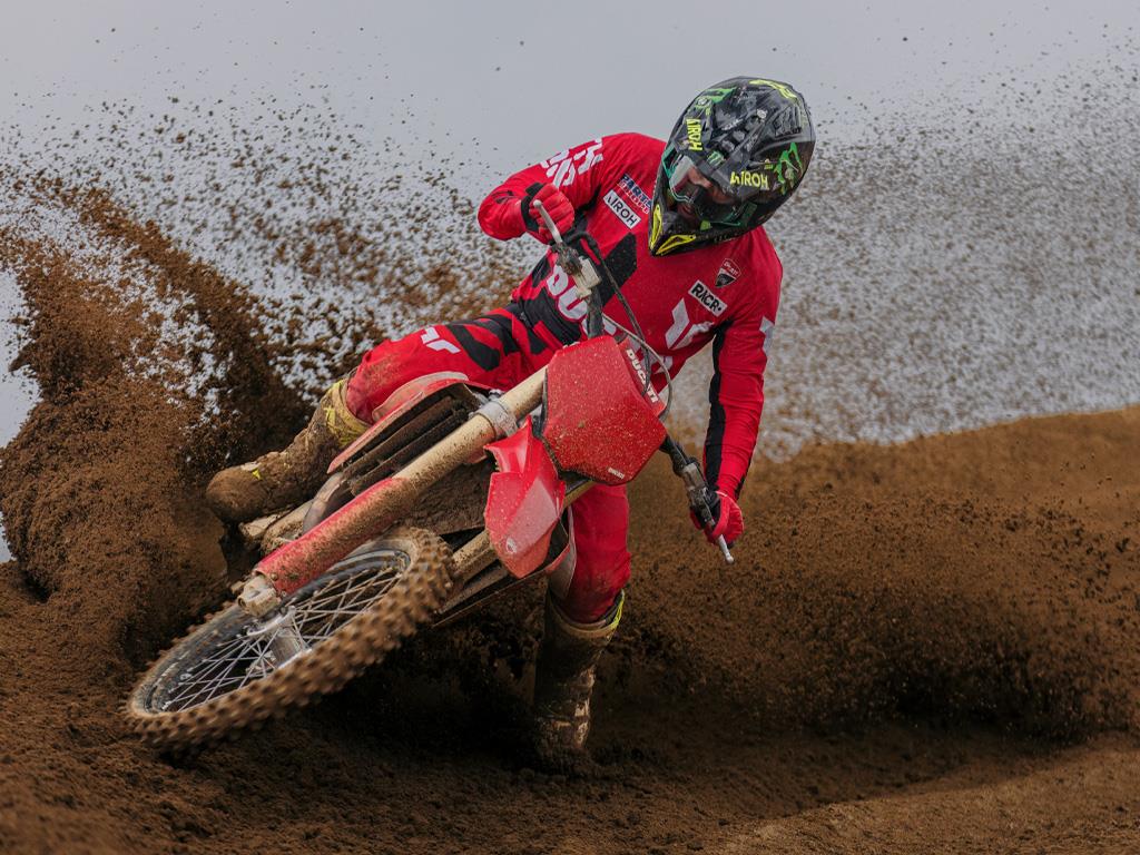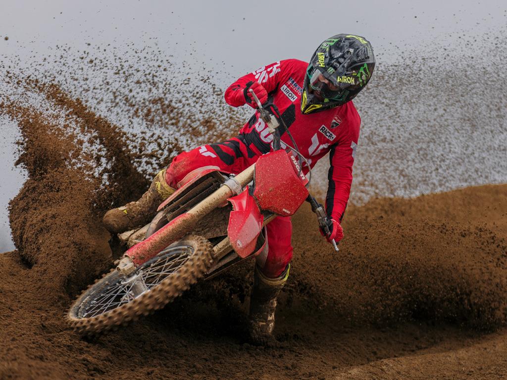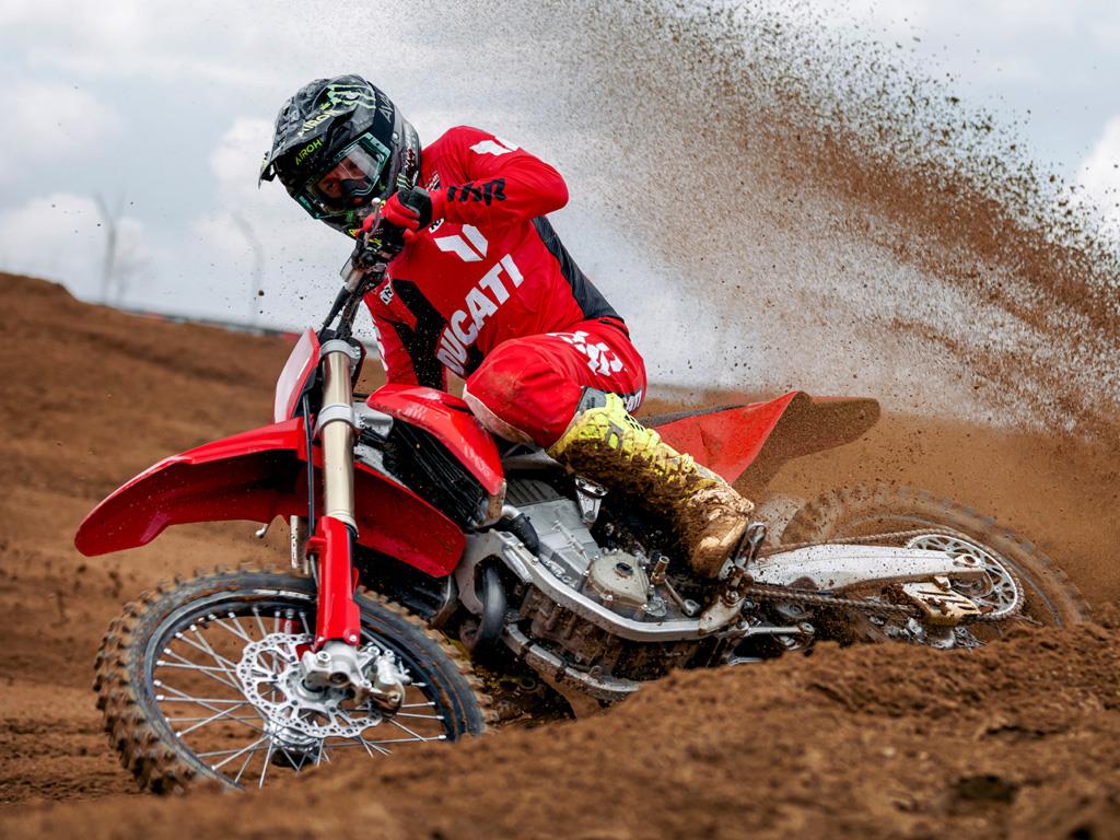 Developed on the racetrack, in the Ducati tradition.The Desmo450 MX was born out of a desire to expand and engage new enthusiasts. Launched in 2021, it fully embodies Ducati's development philosophy: to experiment and refine in competitions solutions intended later for production motorcycles.