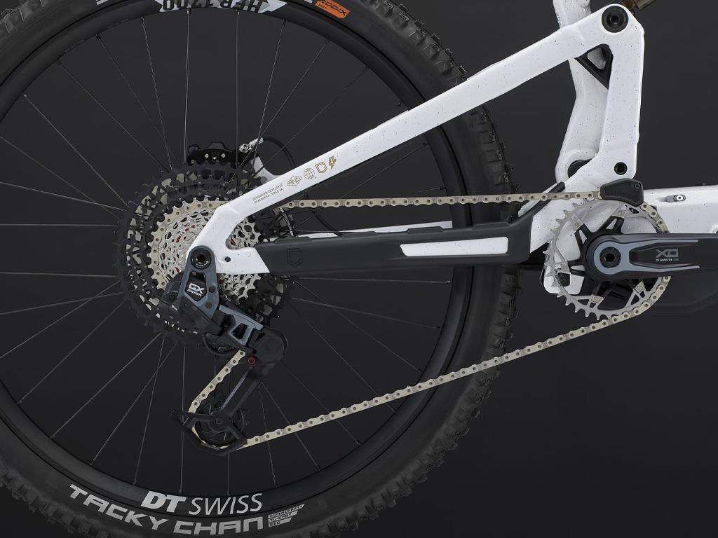 The SIGNATURE model delivers top downhill performance, with every component selected for reliability and capability on steep terrain. To enhance the riding experience, it's equipped with the BOSCH Performance Line SX motor, offering lightweight downhill performance and climbing efficiency, with up to 600W of maximum power. The 400Wh internal battery, paired with a 250Wh range extender, supports long rides while maintaining optimal weight distribution. The FOX 38 Factory fork, featuring Kashima-coated stanchions, a precise e-bike chassis, and the new GRIP X2 damper cartridge with multiple adjustments, represents FOX's premium offering. The rear suspension features a Float X Factory shock with custom tuning, balancing grip, responsiveness, and comfort. The low-speed rebound and compression settings can be adjusted to your liking, and the lockout lever aids in pedalling. The new DT SWISS HFR 1700 wheels are designed for e-bike gravity riding. The DT 350 hubs, rims, and spokes are reinforced, and their hand-built construction ensures reliability in harsh conditions. The SRAM GX Eagle transmission offers precise wireless gear changes in any conditions, with a modular design for easy replacement of wear-prone parts. Braking is handled by SRAM, with MAVEN calipers and 200mm HS2 rotors. Widely praised in DH World Cup, these brakes are among the most powerful available. The FOX Transfer Factory dropper post with Kashima coating completes this premium, high-performance, and reliable setup.