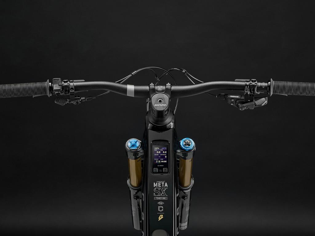 The META POWER SX 800 is aimed at riders who want to venture ever further afield. Fitted with a BOSCH Performance CX Gen5 motor and an 800Wh battery, it combines power and range. Designed for challenging natural trails, it tackles elevation gain with ease and comfort. The Signature model is the ideal bike for performing and discovering new trails. • The Fox 38 fork and FOX Float X2 shock in Factory version offer unmatched support and precision. • The new Eagle 90 transmission in mechanical T-type is reliable and responsive. • The rims are DT SWISS FR541, hand-built on 370 Hybrid hubs. • Braking is provided by TRP DHR EVO PRO. They guarantee power and consistency in all situations.