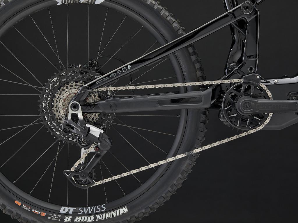 The ESSENTIAL model, as the name suggests, focuses on the essentials. Every component is designed to handle laps on laps without question, offering simplicity, reliability, and functionality. To prioritize the riding experience, we've equipped it with the BOSCH Performance Line SX motor. It combines lightweight downhill performance with climbing efficiency, offering up to 600W of maximum power. The 400Wh internal battery can be paired with a 250Wh range extender for long rides, maintaining optimal weight distribution. The FOX 38 Performance fork, with its precise e-bike chassis and GRIP damper cartridge, is incredibly easy to adjust while delivering flawless performance. For the rear suspension the Float X shock with custom tuning strikes the perfect balance between grip, responsiveness, and comfort. The lockout setting makes climbing easier. The new DT SWISS HF 1900 wheels are specifically designed for e-bike gravity riding. The DT 370 hubs, rims, and spokes are reinforced, and their hand-built construction ensures they're ready for the harshest conditions. The new SRAM Eagle 90 transmission incorporates the T-type system, robust and reliable, in its mechanical version. Ultra-versatile, with a gear range of 520%, it's ideal for long days on the bike. The TRP DH-R EVO PRO are the brand's latest offering, even more powerful and consistent. They are paired with new discs featuring improved bite and heat dissipation. With this combination, power and precise feel are the hallmarks.