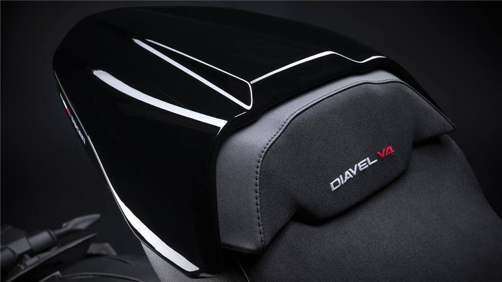 Muscular, gritty, with its broad shoulders and proudly visible four-exit exhaust, the Diavel V4 is designed to convey boldness and not go unnoticed. Starting with the new front and rear light cluster, to the retractable passenger footpegs and the retractable rear grab bar are the details that make the difference and make the design of this bike even more unique and unmistakable.