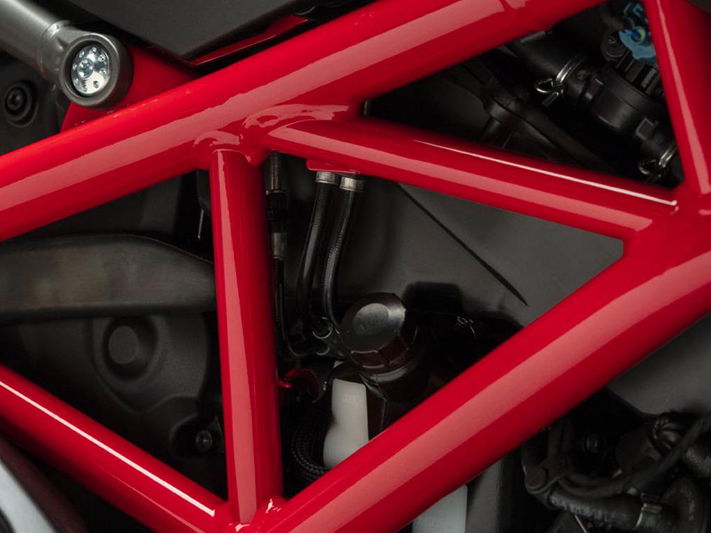 Significant attention has been paid to updating the seat position to guarantee the rider total control of the bike and maximum responsiveness in every riding situation. The saddle is flat and long and slightly raised in the passenger area for added comfort.