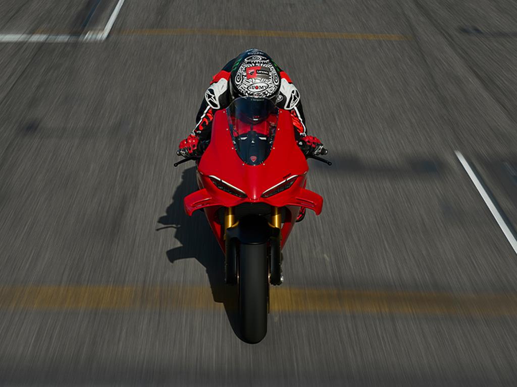 Form meets function. The new Panigale V4 is the motorcycle that comes closest to the MotoGP, inheriting some of the technical solutions developed by the multi-world title winning team so as to offer the rider the same riding sensations as professional riders.
